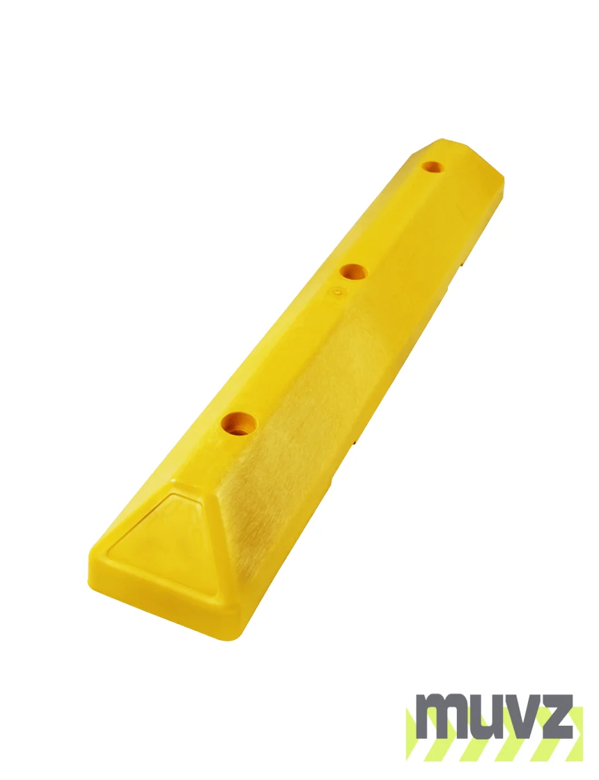 Engineered for added strength at lower weight, the 3-foot commercial plastic parking block can be carried and installed by a single person. LEED qualified and made from injection-molded, 100 percent recycled HDPE plastic, this parking stop resists tire scuffing and natural elements. The color is molded throughout – there's no upkeep required. Great for shopping mall parking lots, apartment and condo complexes, and commercial grounds. Has recessed bolt holes and mounting hardware is included.