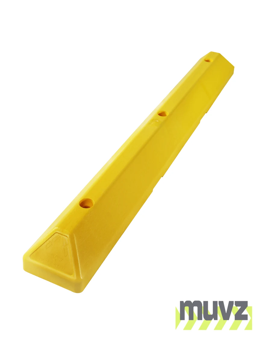 Engineered for added strength at lower weight, the 4-foot commercial plastic parking block can be carried and installed by a single person. LEED qualified and made from injection-molded, 100 percent recycled HDPE plastic, this parking stop resists tire scuffing and natural elements. The color is molded throughout – there's no upkeep required. Great for shopping mall parking lots, apartment and condo complexes, and commercial grounds. Has recessed bolt holes and mounting hardware is included.