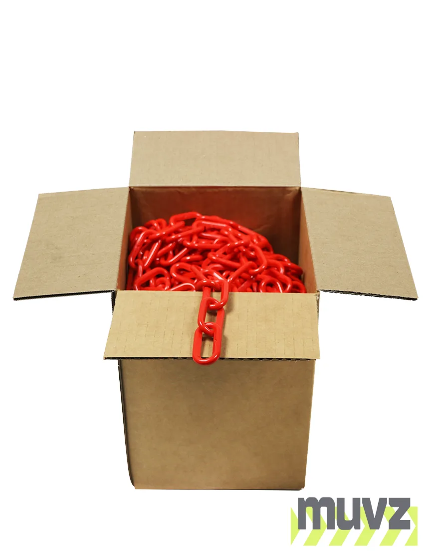100' Box of Red 2" Link, Standard Plastic Chain
