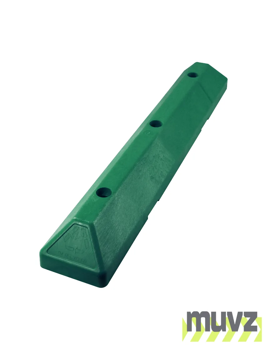 Engineered for added strength at lower weight, the 3-foot commercial plastic parking block can be carried and installed by a single person. LEED qualified and made from injection-molded, 100 percent recycled HDPE plastic, this parking stop resists tire scuffing and natural elements. The color is molded throughout – there's no upkeep required. Great for shopping mall parking lots, apartment and condo complexes, and commercial grounds. Has recessed bolt holes and mounting hardware is included.