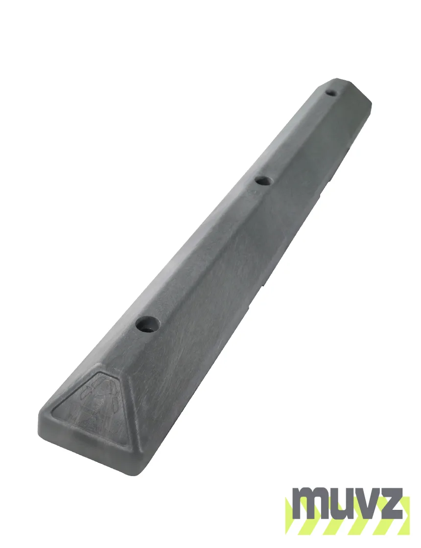 Engineered for added strength at lower weight, the 4-foot commercial plastic parking block can be carried and installed by a single person. LEED qualified and made from injection-molded, 100 percent recycled HDPE plastic, this parking stop resists tire scuffing and natural elements. The color is molded throughout – there's no upkeep required. Great for shopping mall parking lots, apartment and condo complexes, and commercial grounds. Has recessed bolt holes and mounting hardware is included.