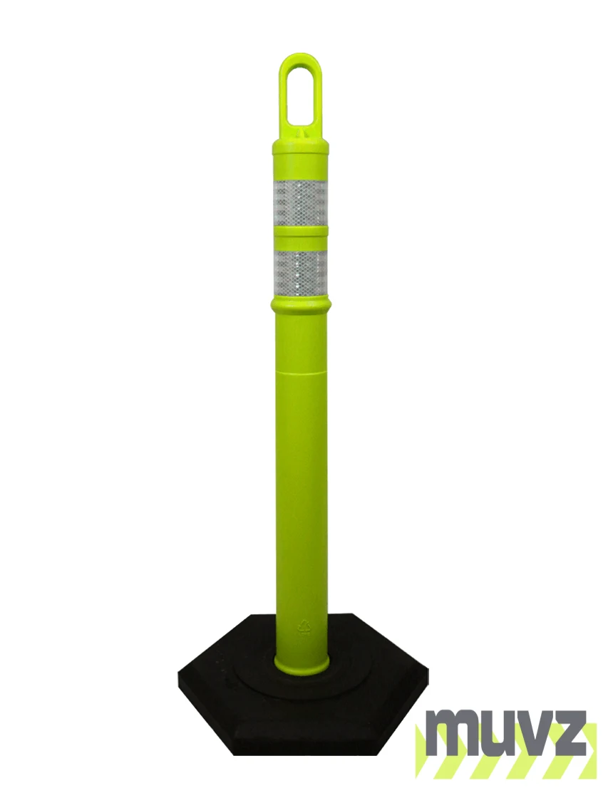 42" LIME Looper Tube with two (2) 3" Reflective Collars and 8 Lb. Base