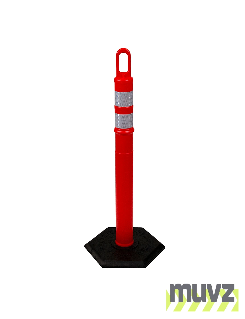 42" ORANGE Looper Tube with two (2) 3" Reflective Collars and 8 Lb. Base