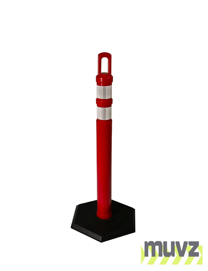 42" RED 'JBC Arch-Top' Tube with Two 3" Reflective Collars and 8lb Base