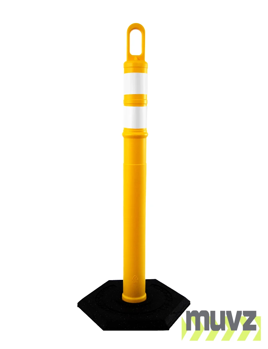 42" YELLOW Looper Tube with two (2) 3" Reflective Collars and 8 Lb. Base