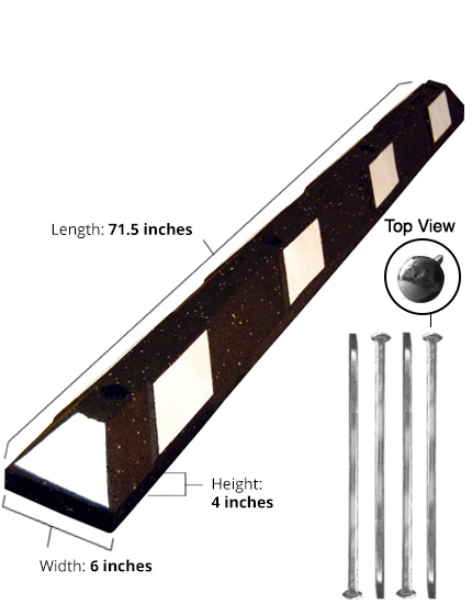 6' Recycled Rubber Parking Block w/White Reflective Tape & 18" Heavy Duty Spikes