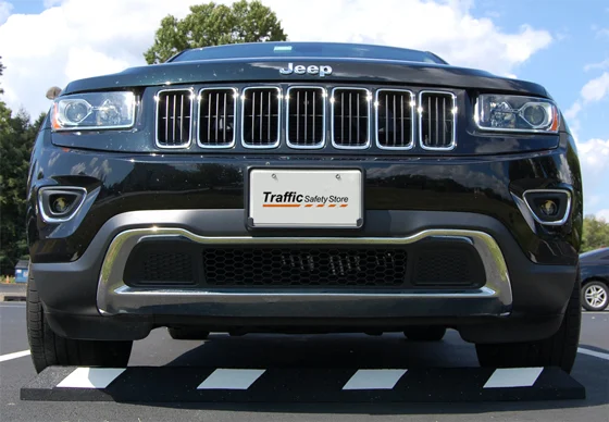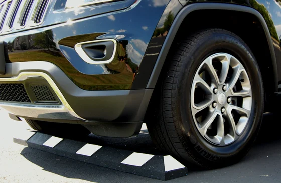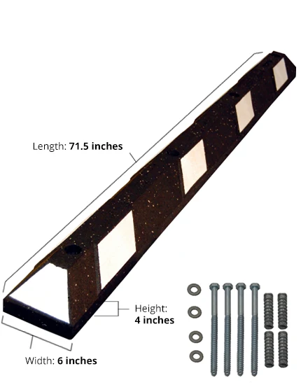 Our 6' rubber parking block is made from 100 percent recycled tires and is designed to endure weather and vehicle contact. This parking stop will flex slightly to lie flat on cracked or uneven surfaces – ideal for older and high-volume commercial parking lots. The six foot recycled rubber parking block comes in handicapped blue or black with high visibility yellow or white reflective strips. Four (4) counter-sunk mounting holes per 6' block.