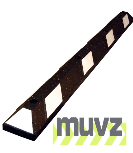 Our 6' rubber parking block is made from 100 percent recycled tires and is designed to endure weather and vehicle contact. This parking stop will flex slightly to lie flat on cracked or uneven surfaces – ideal for older and high-volume commercial parking lots. The six foot recycled rubber parking block comes in handicapped blue or black with high visibility yellow or white reflective strips. Four (4) counter-sunk mounting holes per 6' block.