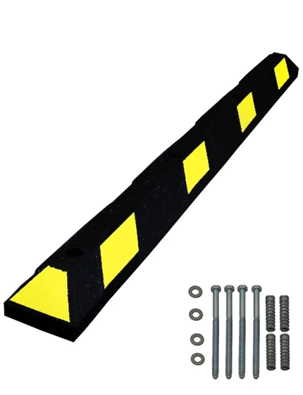6' Recycled Rubber Parking Block w/Yellow Reflective Tape & Lag Bolts for Concrete