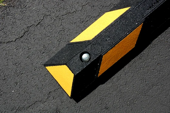 Our 6' rubber parking block is made from 100 percent recycled tires and is designed to endure weather and vehicle contact. This parking stop will flex slightly to lie flat on cracked or uneven surfaces – ideal for older and high-volume commercial parking lots. The six foot recycled rubber parking block comes in handicapped blue or black with high visibility yellow or white reflective strips. Four (4) counter-sunk mounting holes per 6' block.
