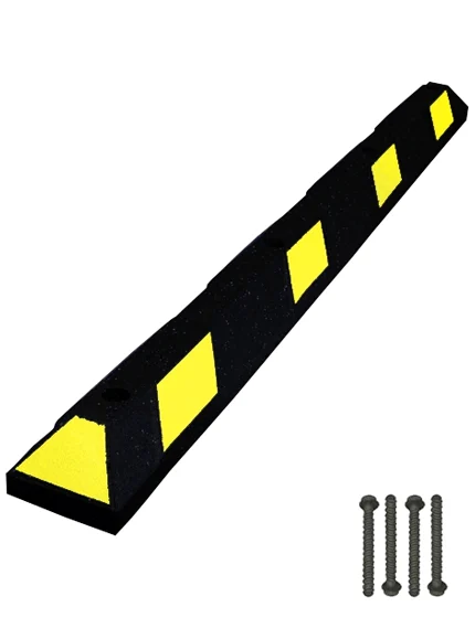 Our 6' rubber parking block is made from 100 percent recycled tires and is designed to endure weather and vehicle contact. This parking stop will flex slightly to lie flat on cracked or uneven surfaces – ideal for older and high-volume commercial parking lots. The six foot recycled rubber parking block comes in handicapped blue or black with high visibility yellow or white reflective strips. Four (4) counter-sunk mounting holes per 6' block.