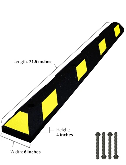 6' Recycled Rubber Parking Block w/Yellow Reflective Tape & Wedge Bolt Fasteners for Concrete