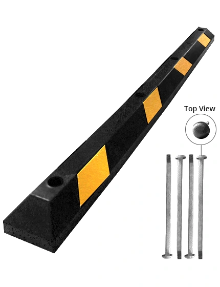 Our Best Value in a Rubber Parking Block the Low-Profile Parking Block. Weighing 26 lbs each they are sturdy and durable but easily carried and installed by one person. These Rubber Wheel Stops are made from Durable Masticated Rubber Compound consisting of approximately 65% pre-consumer recycled rubber and 35% post-consumer recycled rubber. This parking block will flex slightly to lie flat on uneven or cracked surfaces. Low Profile Rubber Parking Blocks have 4 counter-sunk mounting holes per block and all installation hardware is included.