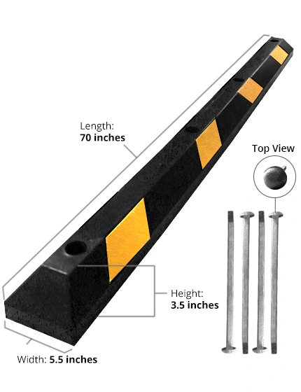 6' Yellow Low-Profile Rubber Parking Block w/four 12" Galvanized Steel Spikes