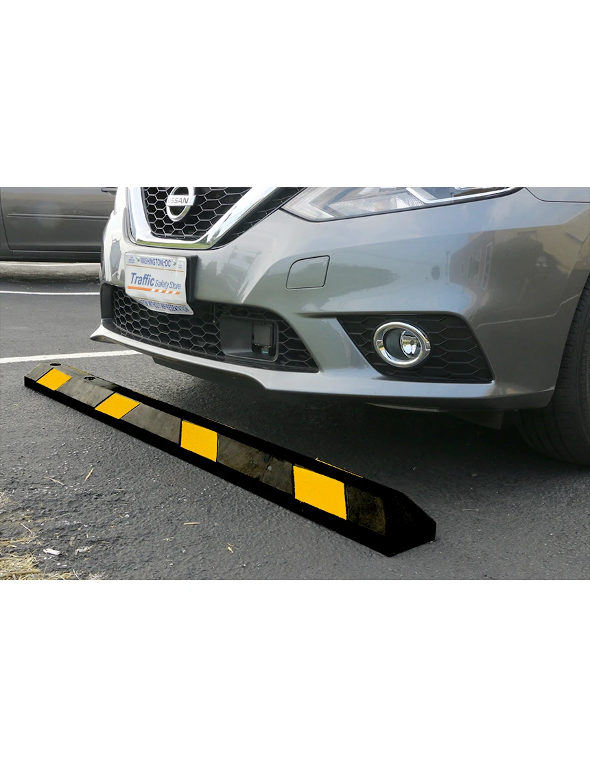 Our Best Value in a Rubber Parking Block the Low-Profile Parking Block. Weighing 26 lbs each they are sturdy and durable but easily carried and installed by one person. These Rubber Wheel Stops are made from Durable Masticated Rubber Compound consisting of approximately 65% pre-consumer recycled rubber and 35% post-consumer recycled rubber. This parking block will flex slightly to lie flat on uneven or cracked surfaces. Low Profile Rubber Parking Blocks have 4 counter-sunk mounting holes per block and all installation hardware is included.