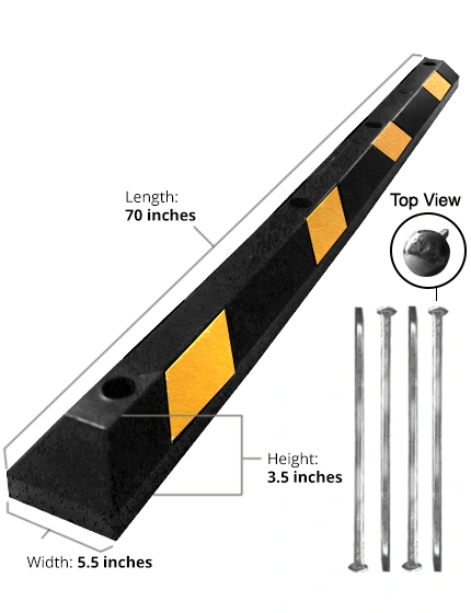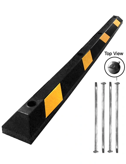 6' Yellow Low-Profile Rubber Parking Block w/four 18" Galvanized Steel Spikes