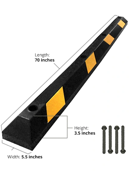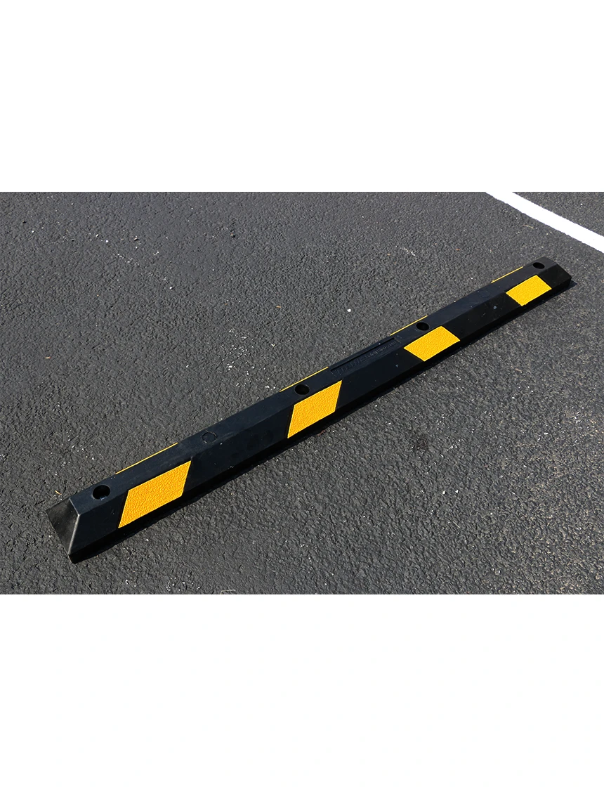 Our Best Value in a Rubber Parking Block the Low-Profile Parking Block. Weighing 26 lbs each they are sturdy and durable but easily carried and installed by one person. These Rubber Wheel Stops are made from Durable Masticated Rubber Compound consisting of approximately 65% pre-consumer recycled rubber and 35% post-consumer recycled rubber. This parking block will flex slightly to lie flat on uneven or cracked surfaces. Low Profile Rubber Parking Blocks have 4 counter-sunk mounting holes per block and all installation hardware is included.