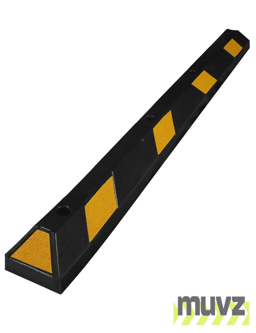 Our Best Value in a 'Full Sized' Rubber Parking Block. Weighing 28 lbs each they are extremely sturdy and durable, but can be carried and installed by only one person. These Rubber Wheel Stops are made exclusively for Muvz from a durable masticated rubber compound consisting of approximately 65% pre-consumer recycled rubber and 35% post-consumer recycled rubber. Muvz brand rubber parking blocks have 4 counter-sunk mounting holes per block and all installation hardware is included.