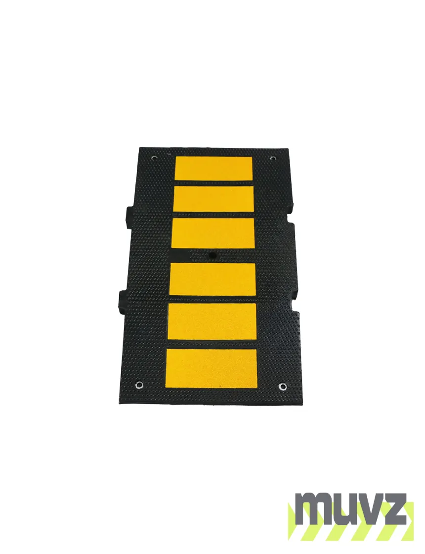 At 40 lbs. per section, there is nothing ‘economy’ about these speed humps. By using 100% post-industrial recycled rubber, and having fewer reflective panels per piece, Muvz has successfully brought the price down on recycled rubber speed humps.