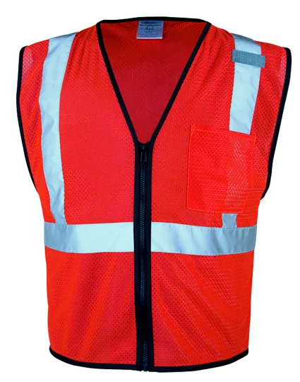 Orange, Class 2, One (1) Pocket, Zipper, Mesh Vest, Adjustable SMALL-MEDIUM