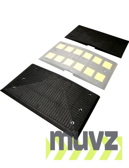 Speed Bump End Cap sections should be paired with Middle Sections as needed for a complete Speed Hump installation. Fully recyclable and made from extremely durable 100 percent recycled tires, these speed hump end caps are easy to attach and give speed humps a solid, finished appearance.