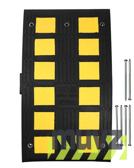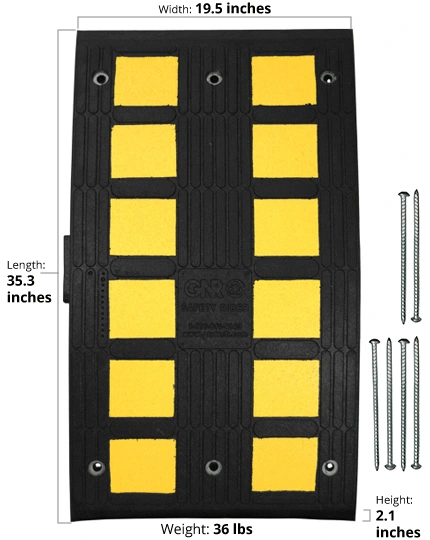 Heavy Duty Recycled Rubber Speed Hump Section, 35.5"L x 19.5"W x 2.1"T w/14" Galvanized Rebar Spikes