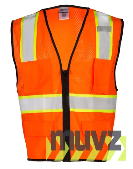 4XL-5XL, Orange, Four (4) Pocket, Contrasting Mesh Class 2 Vest
