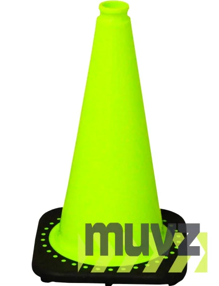 Our 18" traffic cone contains over 50 percent recycled content and is completely recyclable. Available in UV-resistant fluorescent orange or lime. For added visibility at night, add a 6" reflective collar. We offer custom logos (text and graphic) at no additional set-up charge.