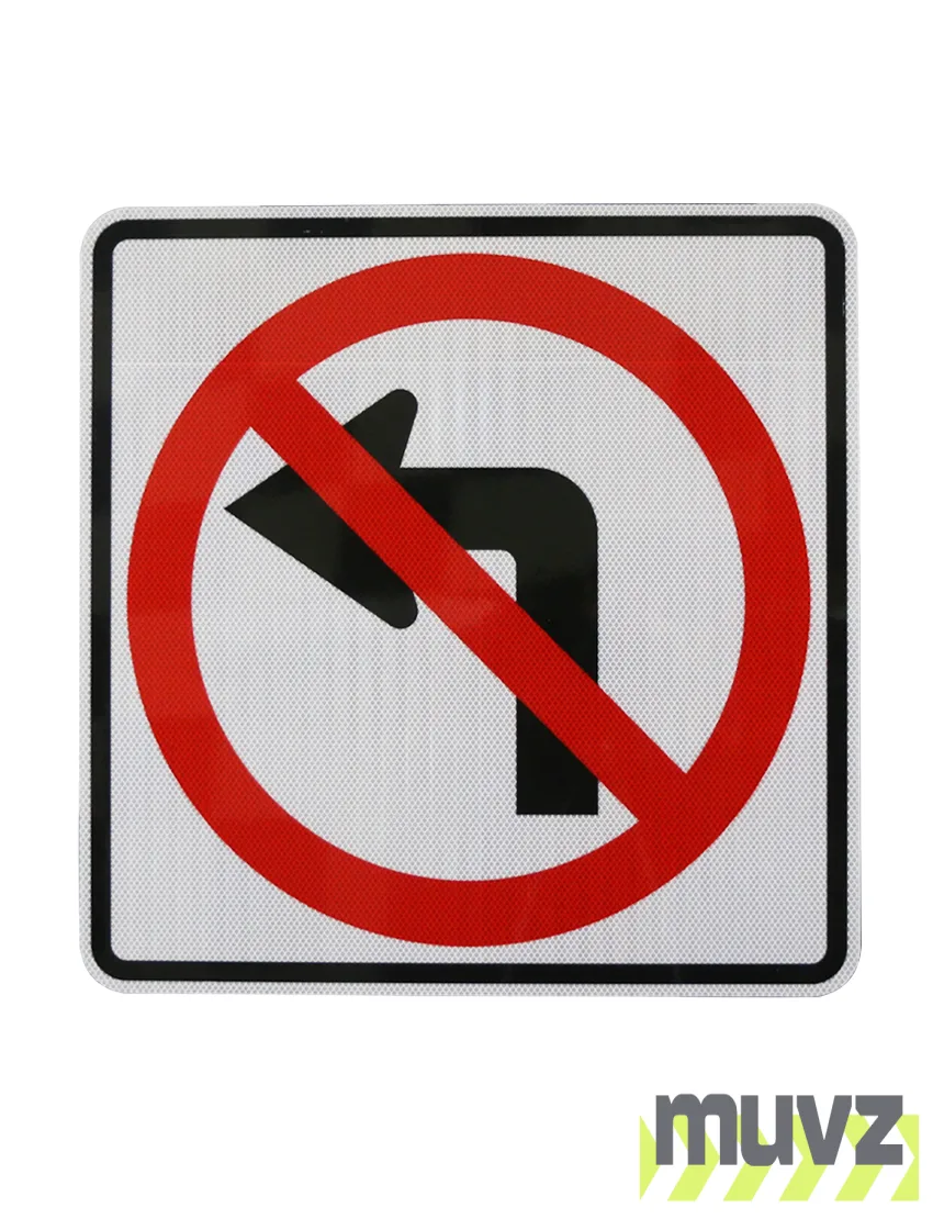All Muvz 24" and 30" No Left Turn Symbol Signs are 3 mil, 36" and 48" No Right Turn Symbol Signs are 4 mil for added stiffness. High Intensity Prismatic Reflective Sheeting by 3M meets ASTM D4956 Type III & IV and comes with a ten (10) year performance warranty.