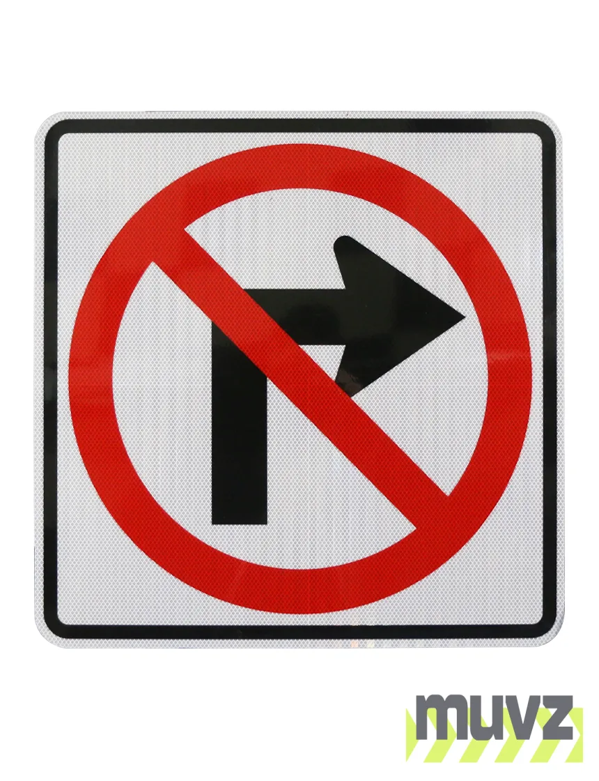 All Muvz 24" and 30" No Right Turn Symbol Signs are 3 mil, 36" and 48" No Right Turn Symbol Signs are 4 mil for added stiffness. High Intensity Prismatic Reflective Sheeting by 3M meets ASTM D4956 Type III & IV and comes with a ten (10) year performance warranty.