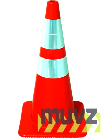 28" flow molded traffic cones are available with optional 6" and 4" high-intensity reflective collars for night use.