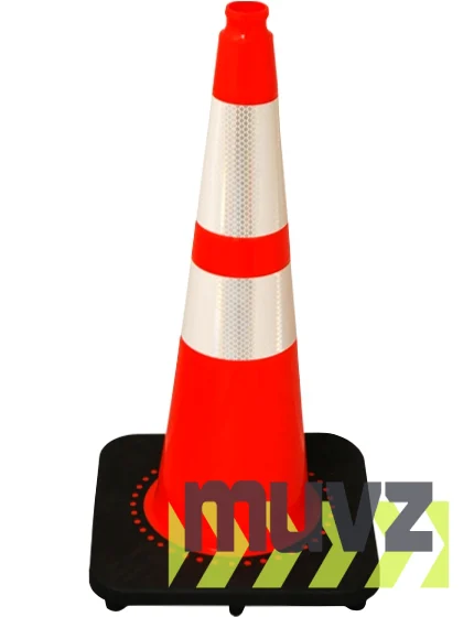 'Slim Line' Orange 28" 7.0 Lb. Black Base Cone with 6" & 4" Reflective Collars