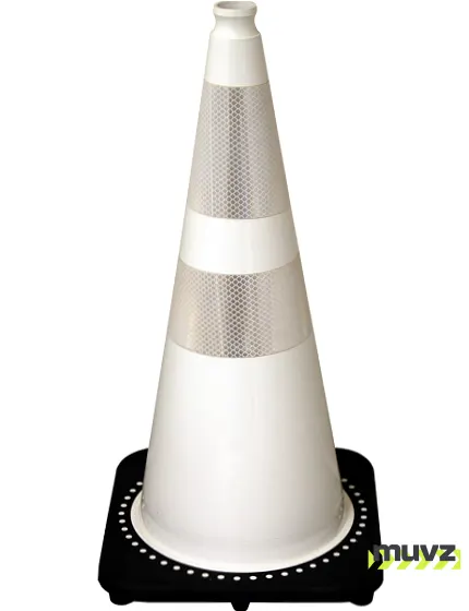 White 28" 7.0 Lb. Black Base Cone with 6" & 4" Reflective Collars