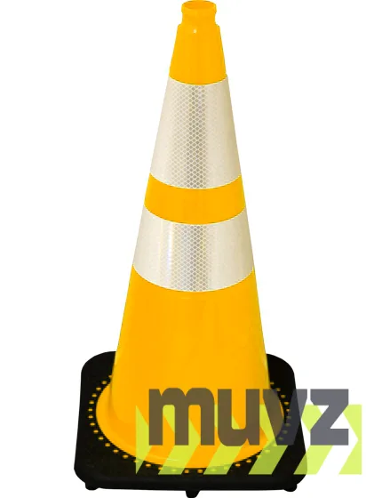 Yellow 28" 7.0 Lb. Black Base Cone with 6" & 4" Reflective Collars