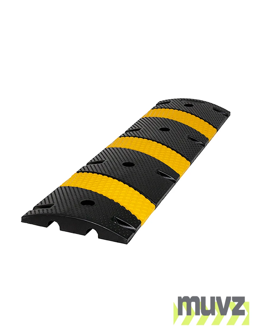 Our 4' Economy Rubber Speed Bumps are constructed from a very durable blend of vulcanized rubber. These economy rubber speed bumps are designed to reduce and control the speed of vehicles in parking lots, roadways, and private lanes. Our speed bumps include bright yellow stripes which are molded into the speed bump and embedded glass reflectors for increased visibility.