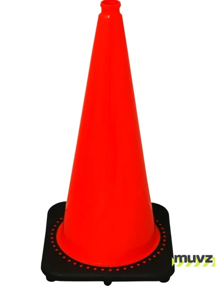 The 28" traffic cone from JBC Safety Plastics is the most recognized traffic cone in highway projects and roadwork. Injection-molded to withstand extreme weather and impact from commercial vehicles, the cleated black 100% recycled rubber base on these traffic cones grips the road and prevents tipping. To meet MUTCD road cone specifications for nighttime use, simply add the optional high-intensity 6" and 4" reflective collars. Our JBC 28 inch traffic cone is fully recyclable with over 50 percent recycled content. The JBC 28 inch traffic cone is are available in fade-resistant fluorescent orange, lime green, blue, or white. No additional set-up fees for custom lettering or logos. Our 28" black base traffic cones are 28" with a 14" x 14" base. Standard weight is 7 lbs and a 10 lbs option is available in orange for heavy duty applications. In Stock and Ships Immediately.
