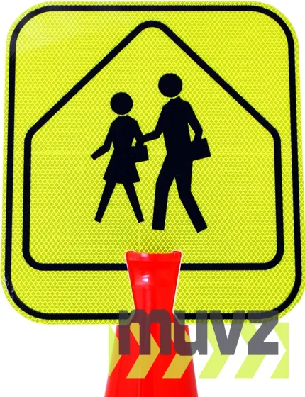 Our Double-Sided, Lime Reflective, Pedestrian Crossing Sign alerts motorists traveling from both directions. Weather-resistant and designed with special grooves that securely attach to traffic cones. A necessity for playgrounds, youth sports fields and gymnasiums, student pick-ups and drop-offs and other recreational/school events.