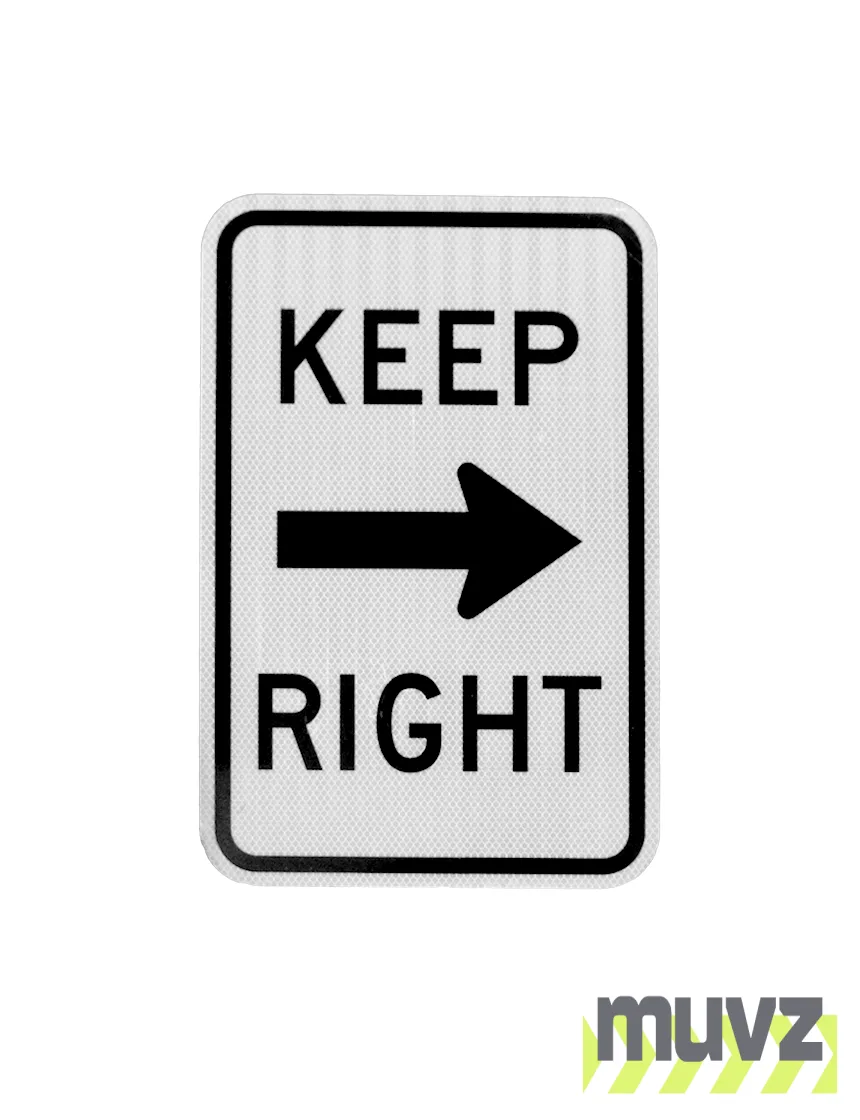 All Muvz Keep Right Signs are 3 mil. High Intensity Prismatic Reflective Sheeting by 3M meets ASTM D4956 Type III & IV and comes with a ten (10) year performance warranty.