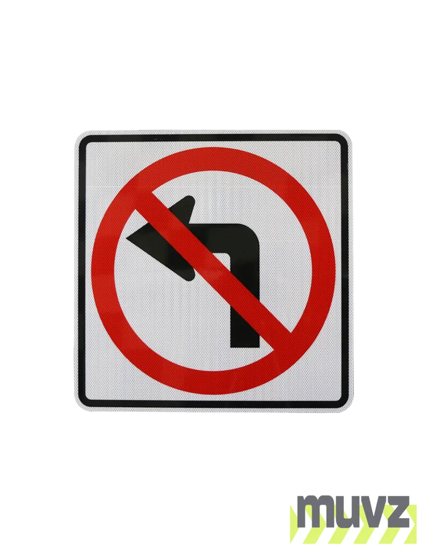 All Muvz 24" and 30" No Left Turn Symbol Signs are 3 mil, 36" and 48" No Right Turn Symbol Signs are 4 mil for added stiffness. High Intensity Prismatic Reflective Sheeting by 3M meets ASTM D4956 Type III & IV and comes with a ten (10) year performance warranty.