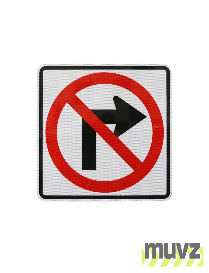 All Muvz 24" and 30" No Right Turn Symbol Signs are 3 mil, 36" and 48" No Right Turn Symbol Signs are 4 mil for added stiffness. High Intensity Prismatic Reflective Sheeting by 3M meets ASTM D4956 Type III & IV and comes with a ten (10) year performance warranty.